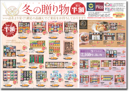 ピコ3階のお歳暮特設会場には、チラシに掲載していない商品も多数ございますが、このチラシには、「有料発送」や「ご持参」に最適の商品の中から、特に人気が出ると予想した商品を抜粋して掲載しております。
