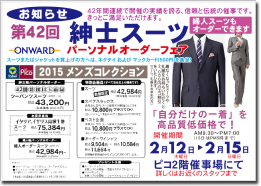 2015年2月12日(木)~2月15日(日)に開催される「第42回 紳士スーツ パーソナルオーダーフェア 2015 MEN'S COLLECTION」です。