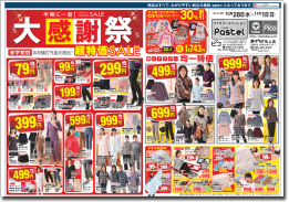 ピコ2階中央部と、吹上店生活館のそれぞれに、「暮らしの衣料をお手頃価格でお求めできる」新しいスタイルの衣料品売場として、「ファミリーファッション パステル」のコーナーを開設し、お陰様で大好評をいただいております。