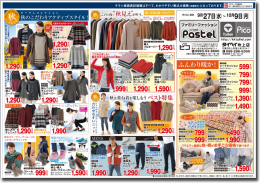 ピコ2階中央部と、吹上店生活館のそれぞれに、「暮らしの衣料をお手頃価格でお求めできる」新しいスタイルの衣料品売場として、「ファミリーファッション パステル」のコーナーを開設し、お陰様で大好評をいただいております。