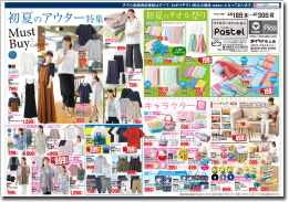 今回は「初夏マストなTOPS!」と「母の日セール」のダブルタイトルで、これからの季節に役立つファッションから、肌着、タオルからや便利雑貨まで、ズバリ特価で豊富なラインナップで取り揃えました。