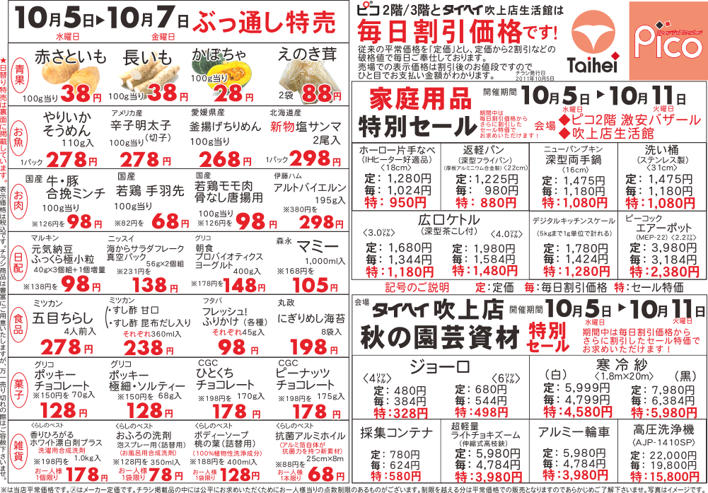 10月5日(水)~7日(金)のチラシは以下の通りです。