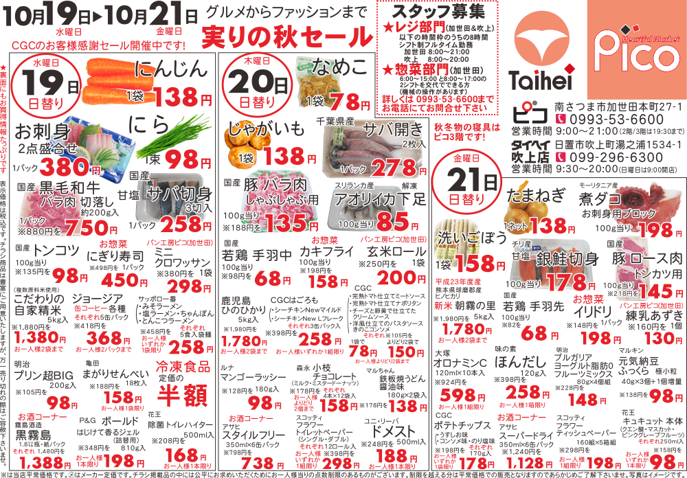 10月19日(水)~21日(金)のチラシは以下の通りです。