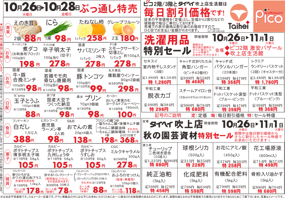 10月26日(水)~28日(金)のチラシは以下の通りです。