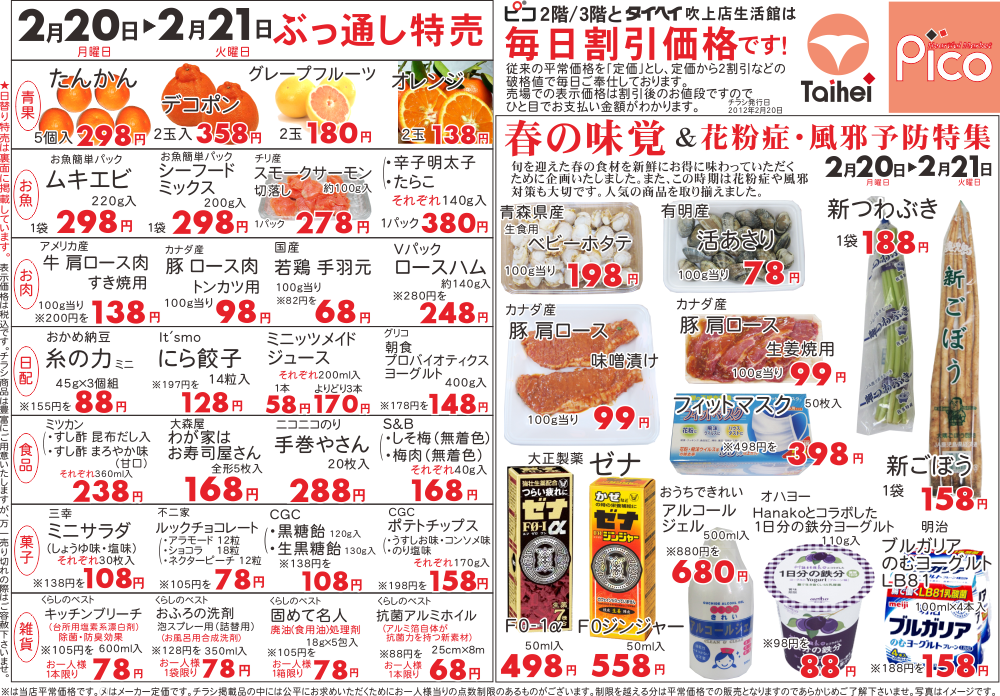 2月20日(月)~21(火)のチラシは以下の通りです。