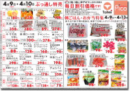 4月9日(月)~10日(火)のチラシは以下の通りです。