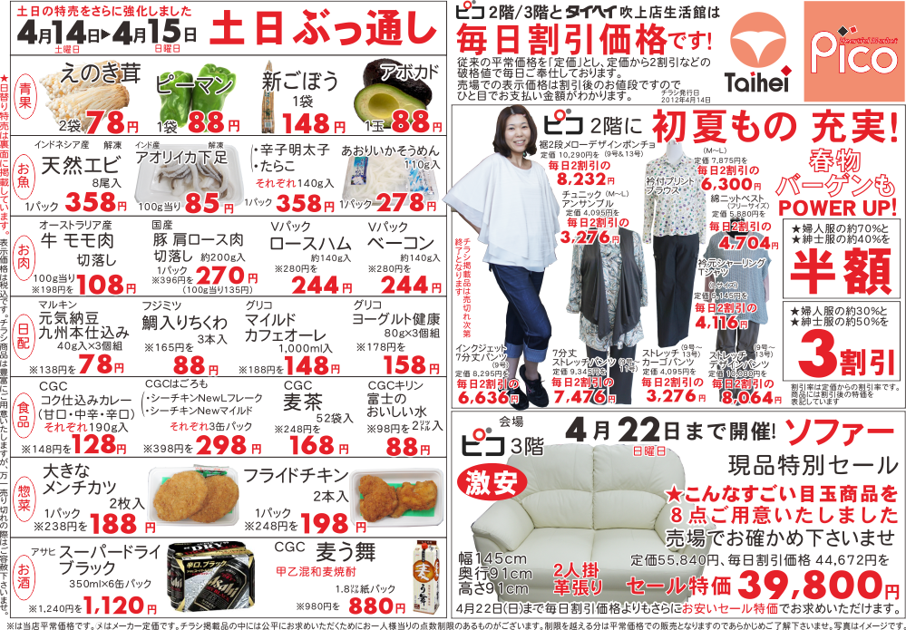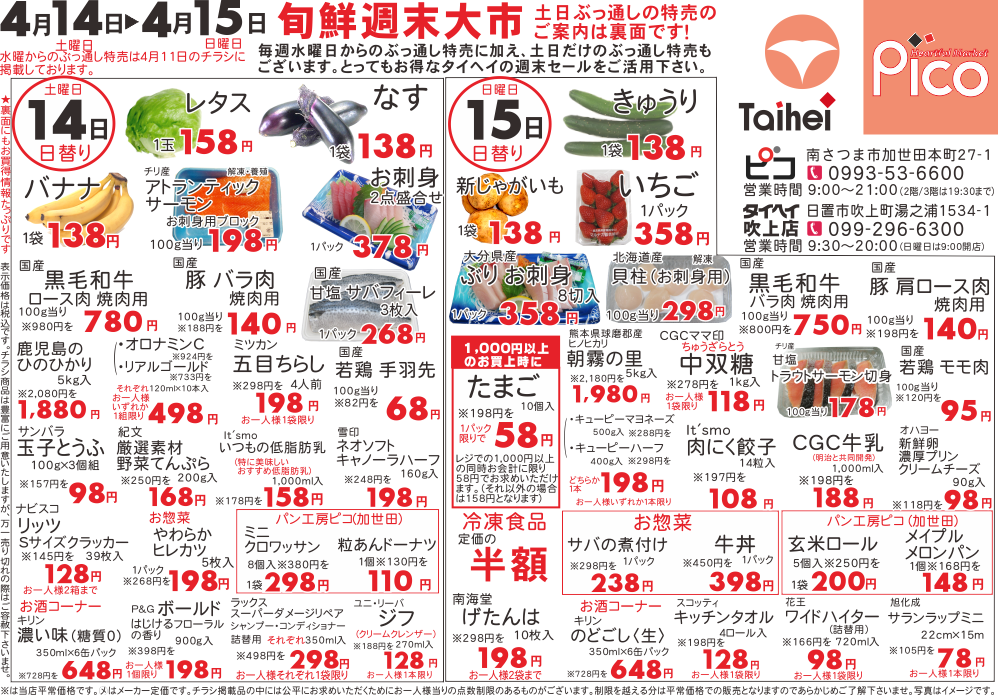 4月14日(土)~15日(日)のチラシは以下の通りです。