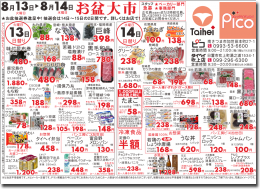 8月13日(火)~14日(水)のチラシは以下の通りです。