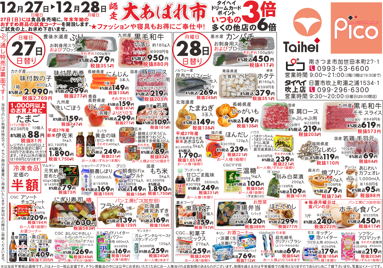12月27日(日)~28日(月)のチラシは以下の通りです。
