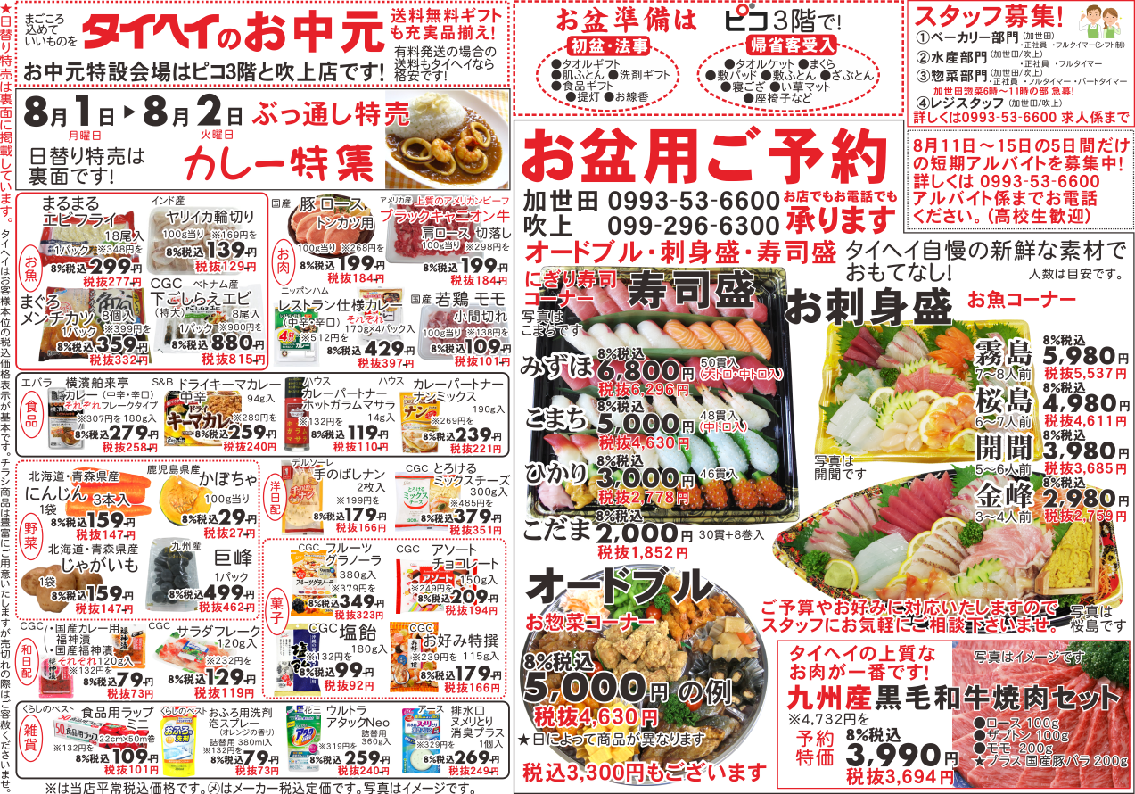 8月1日(月)~2日(火)のチラシは以下の通りです。