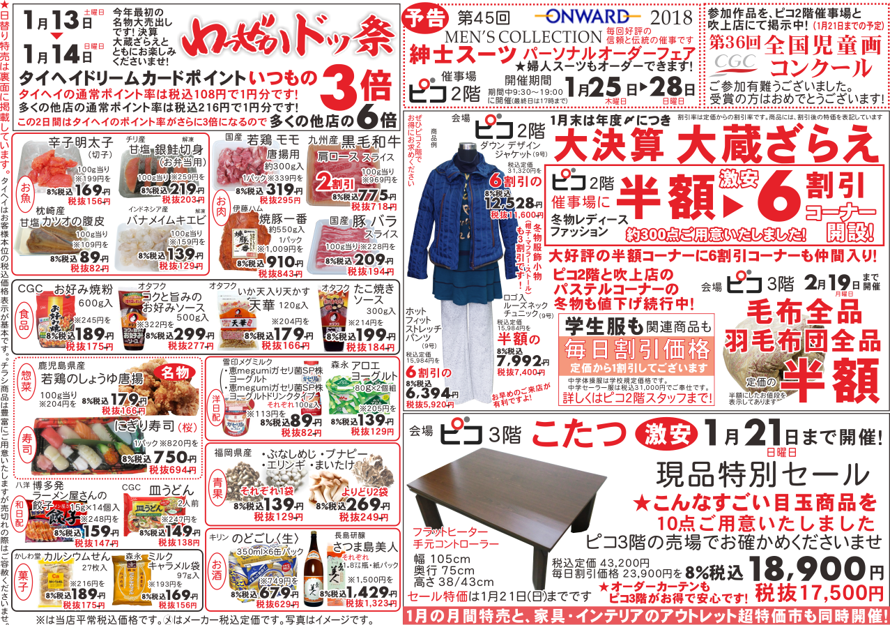 1月13日(土)~14日(日)のチラシは以下の通りです。