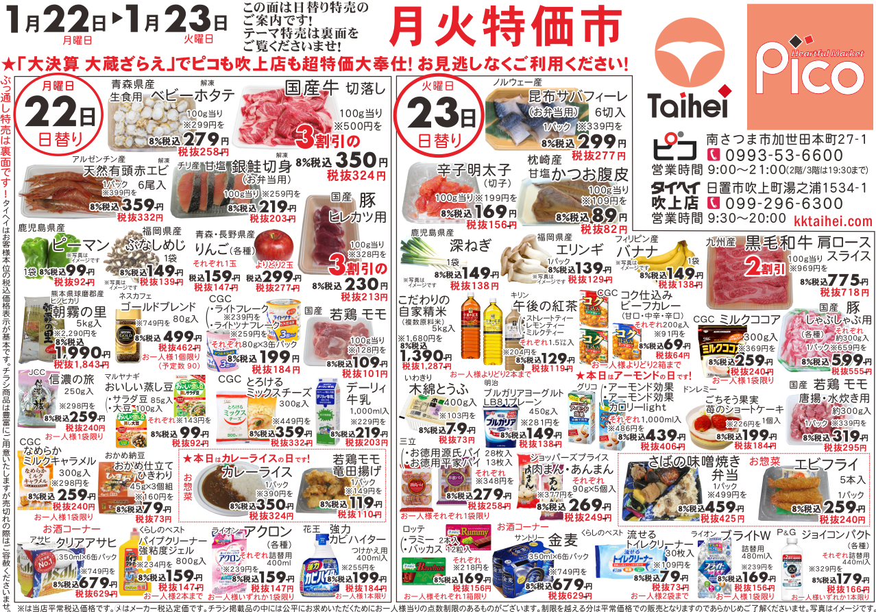 1月22日(月)~23日(火)のチラシは以下の通りです。