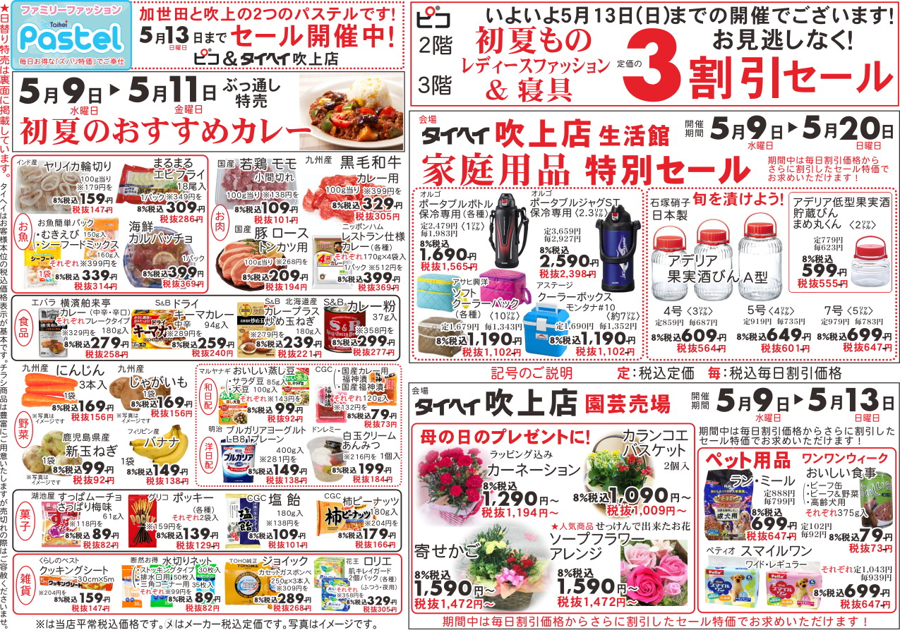 5月9日(水)~11日(金)のチラシは以下の通りです。
