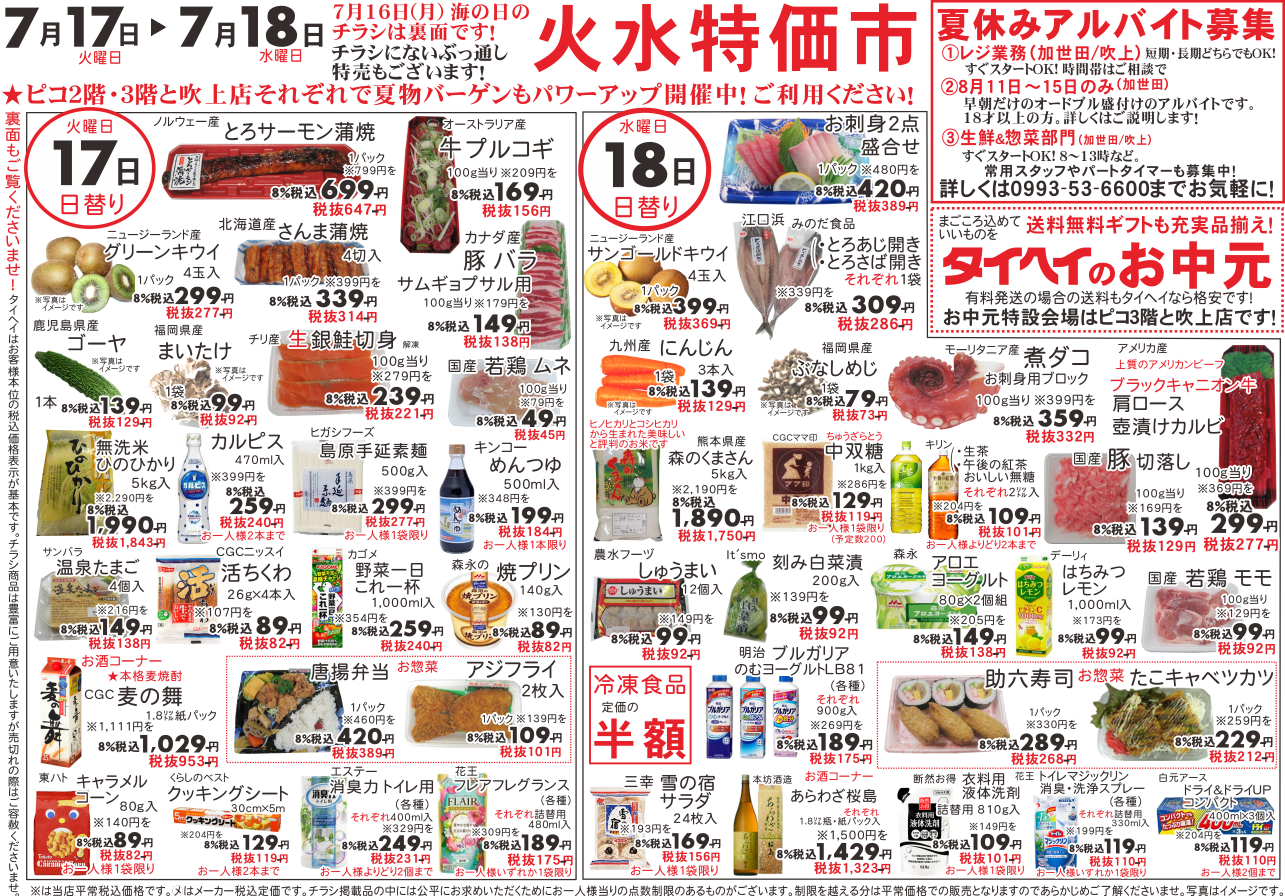 7月16日(月)~18日(水)のチラシは以下の通りです。