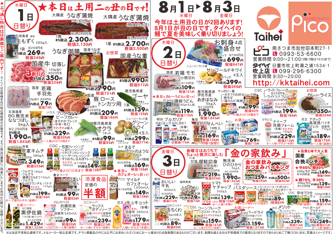 8月1日(水)~3日(金)のチラシは以下の通りです。