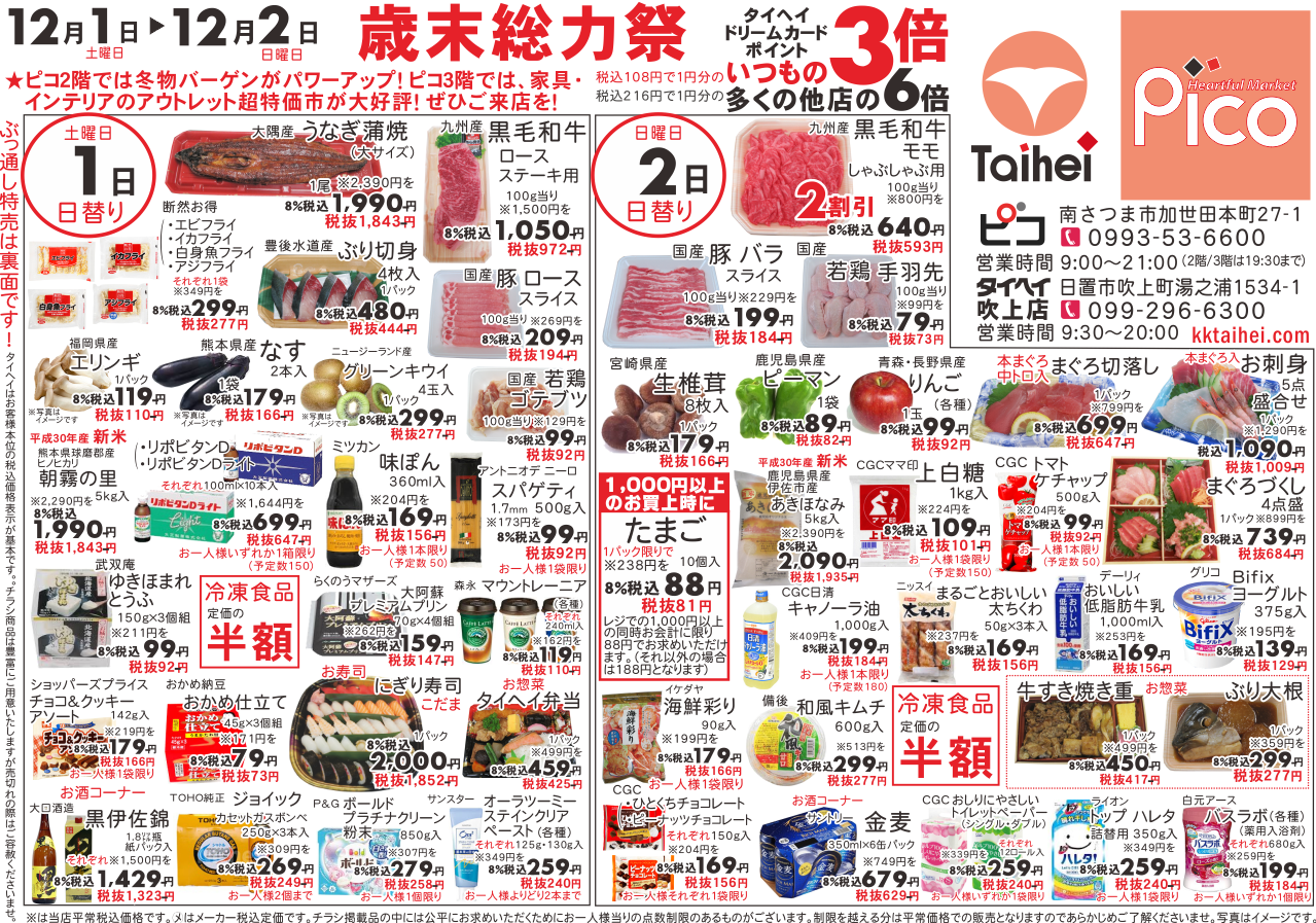 12月1日(土)~2日(日)のチラシは以下の通りです。