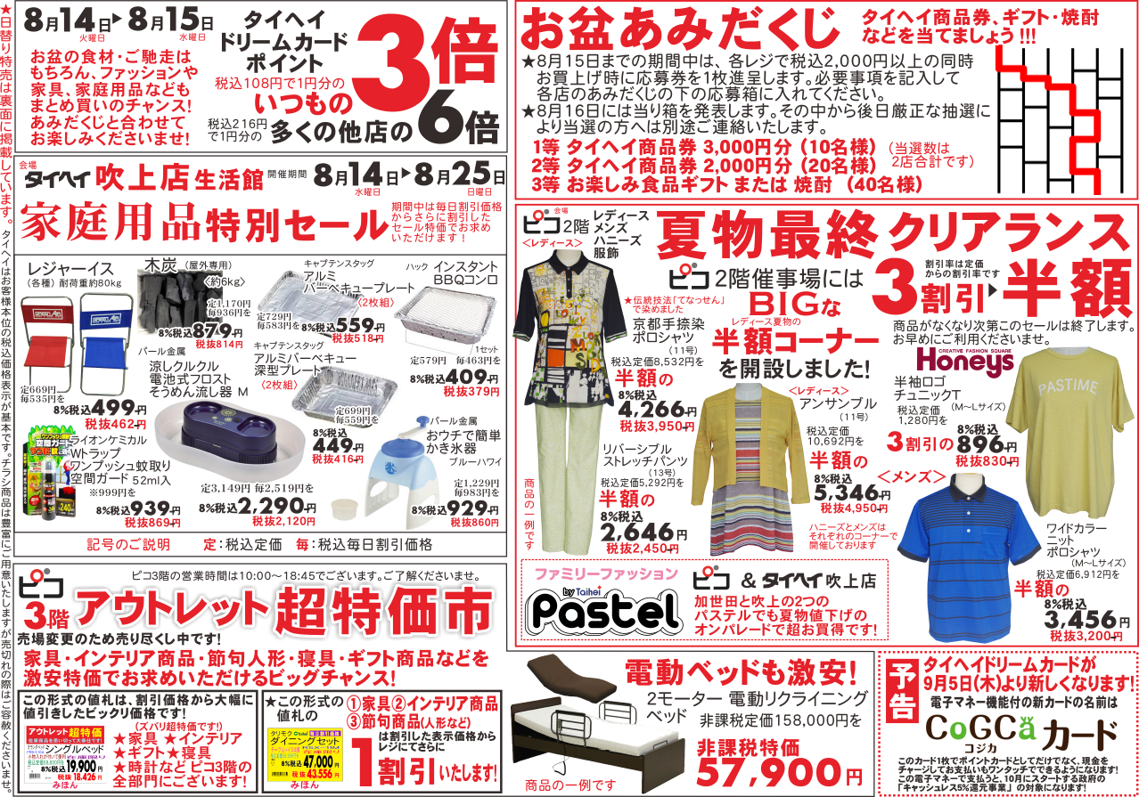 8月5日(月)~6日(火)のチラシは以下の通りです。