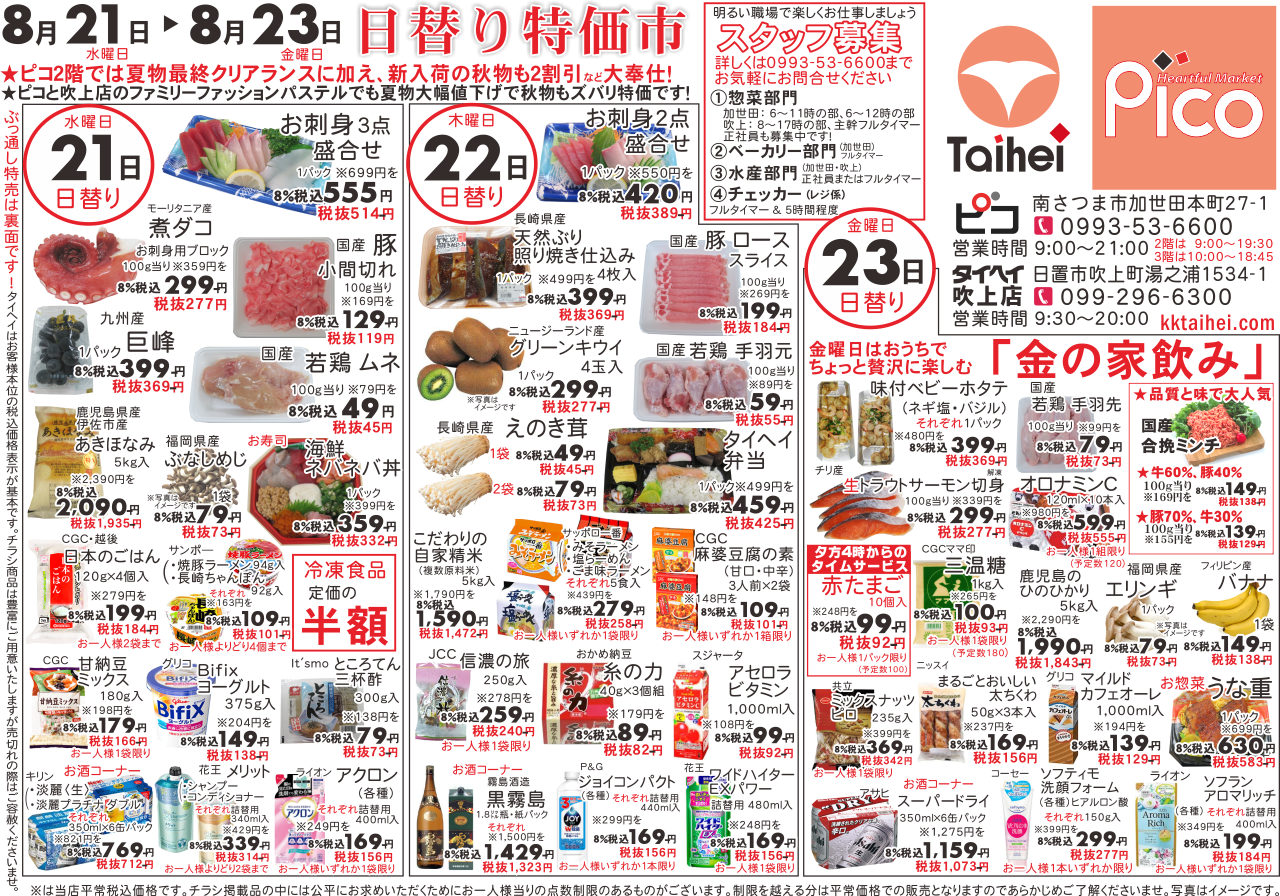 8月21日(水)~23日(金)のチラシは以下の通りです。