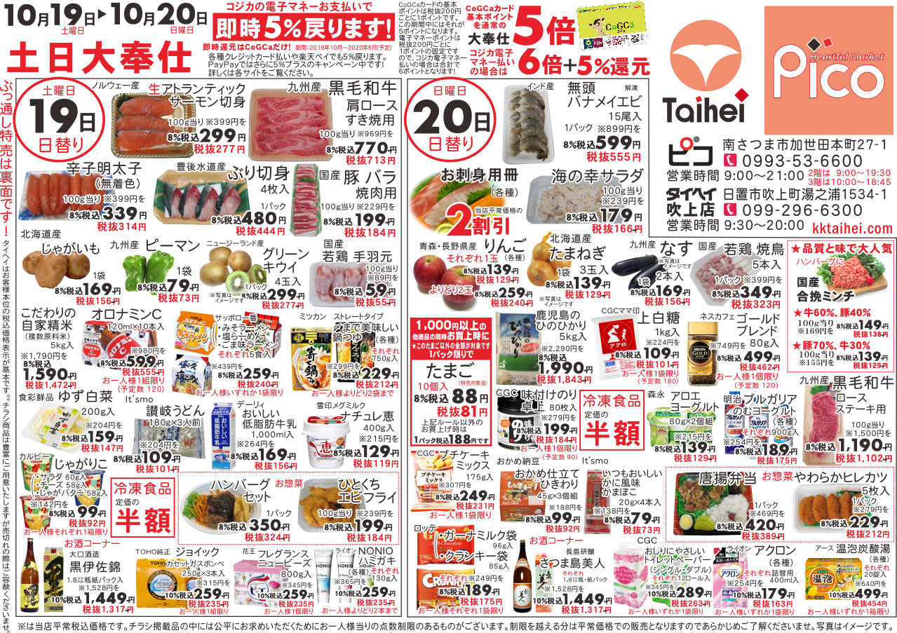 10月19日(土)~20日(日)のチラシは以下の通りです。