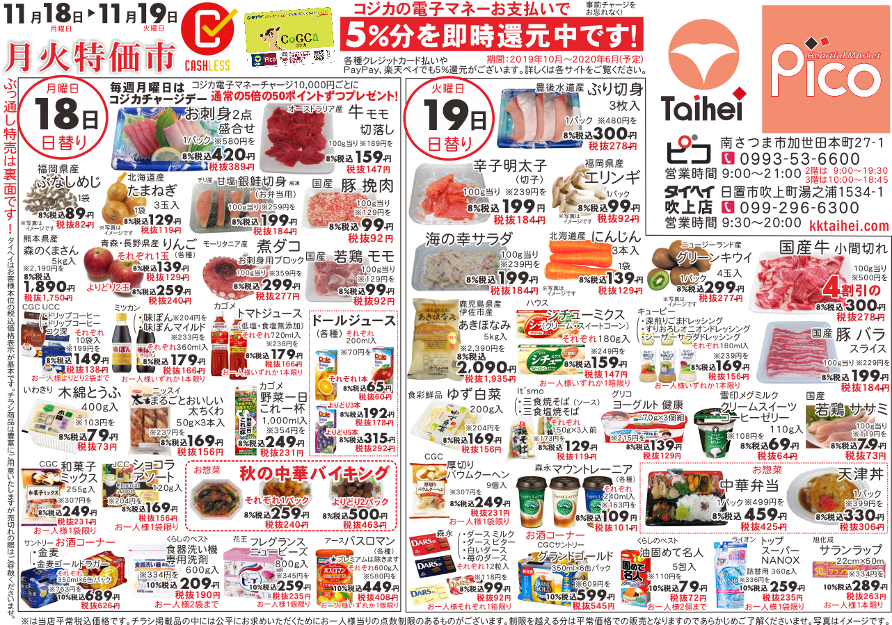 11月18日(月)~19日(火)のチラシは以下の通りです。