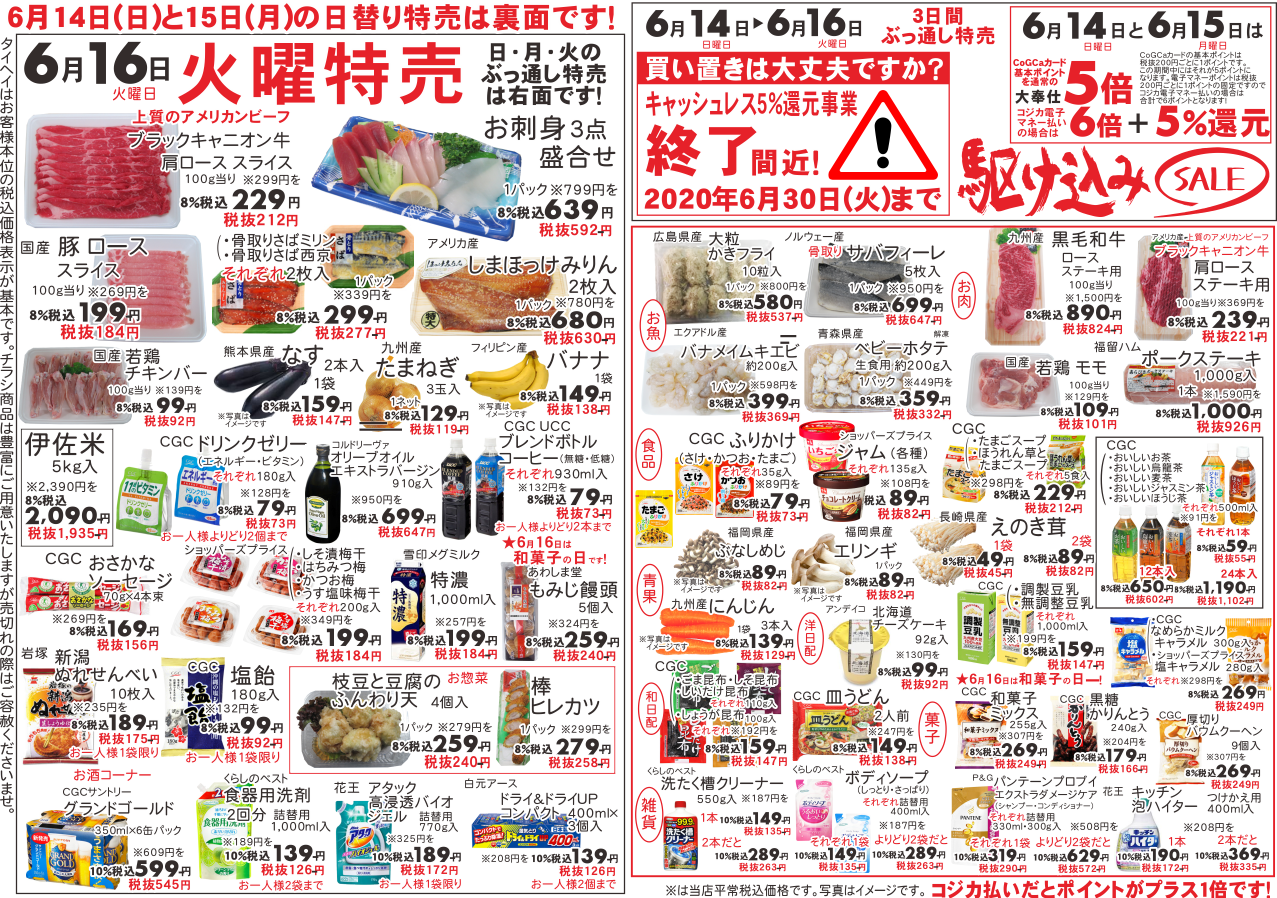 6月8日(月)~9日(火)のチラシは以下の通りです。