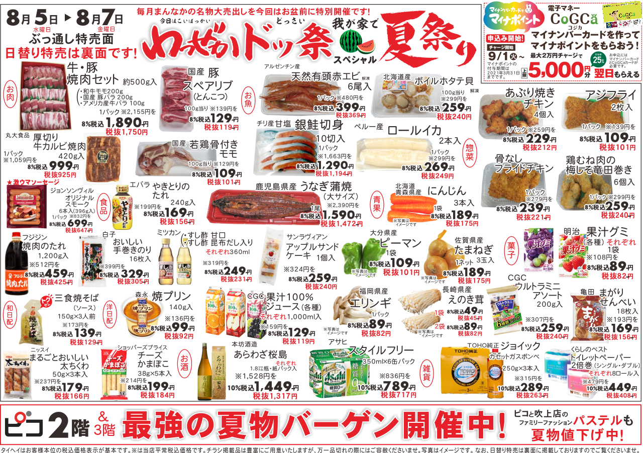 8月5日(水)~7日(金)のチラシは以下の通りです。