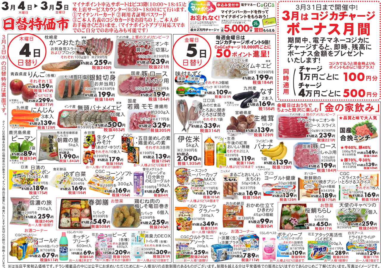 3月8日(月)~9日(火)のチラシは以下の通りです。