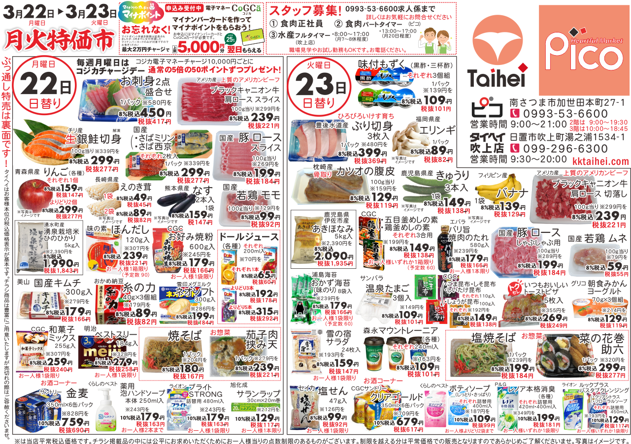 3月22日(月)~23日(火)のチラシは以下の通りです。