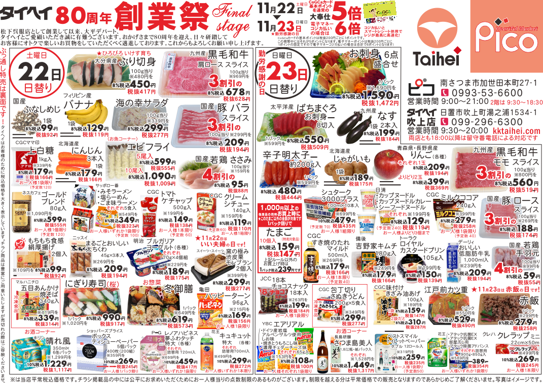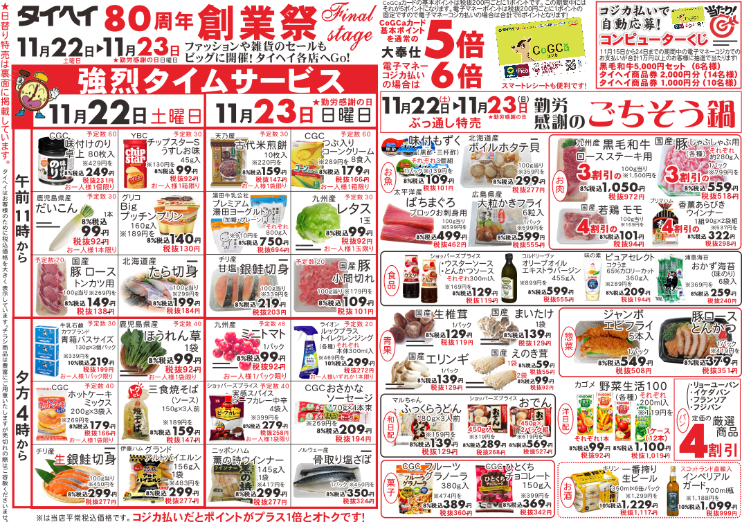 11月22日(土)~23日(日)のチラシは以下の通りです。