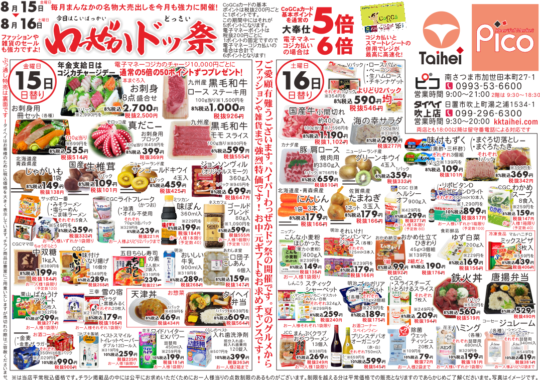 8月15日(金)~16日(土)のチラシは以下の通りです。
