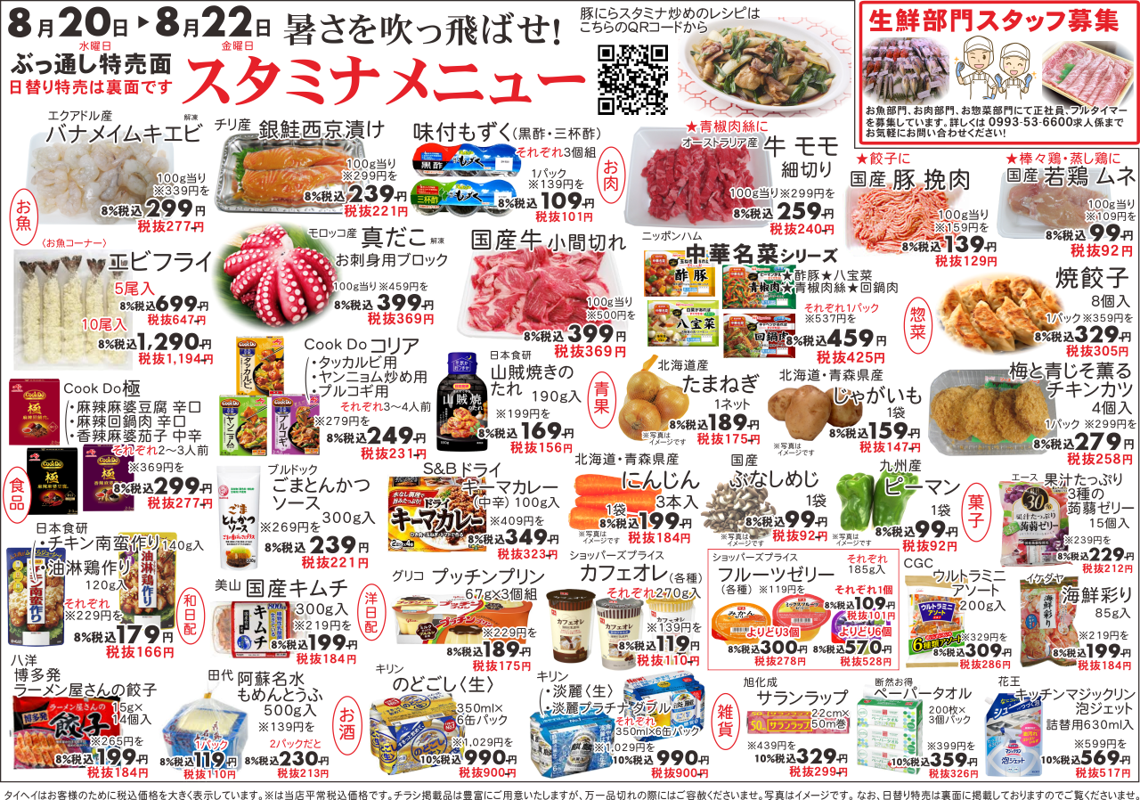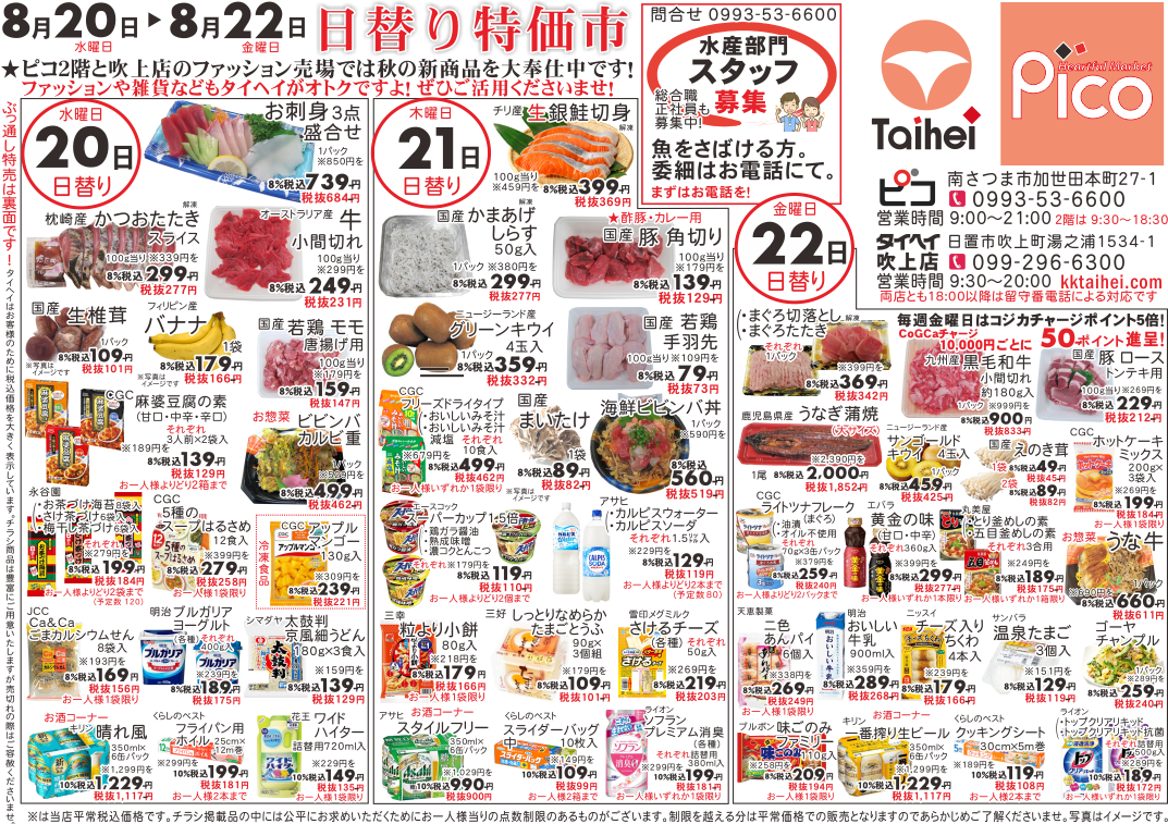 8月20日(水)~22日(金)のチラシは以下の通りです。