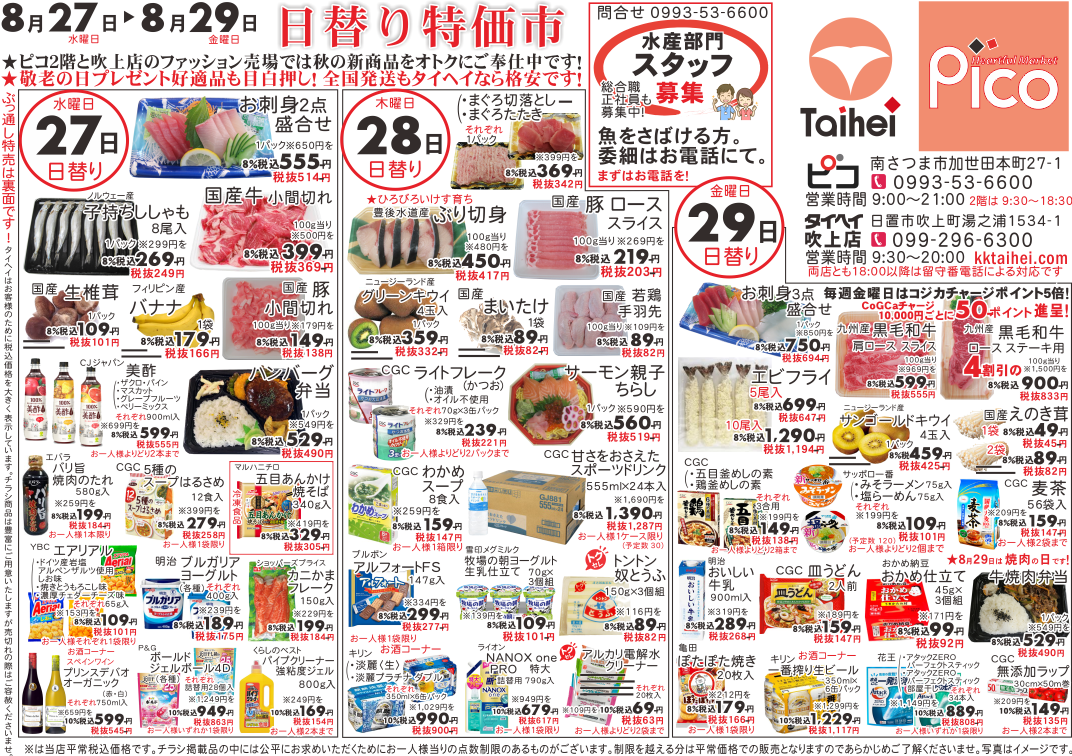 8月27日(水)~29日(金)のチラシは以下の通りです。