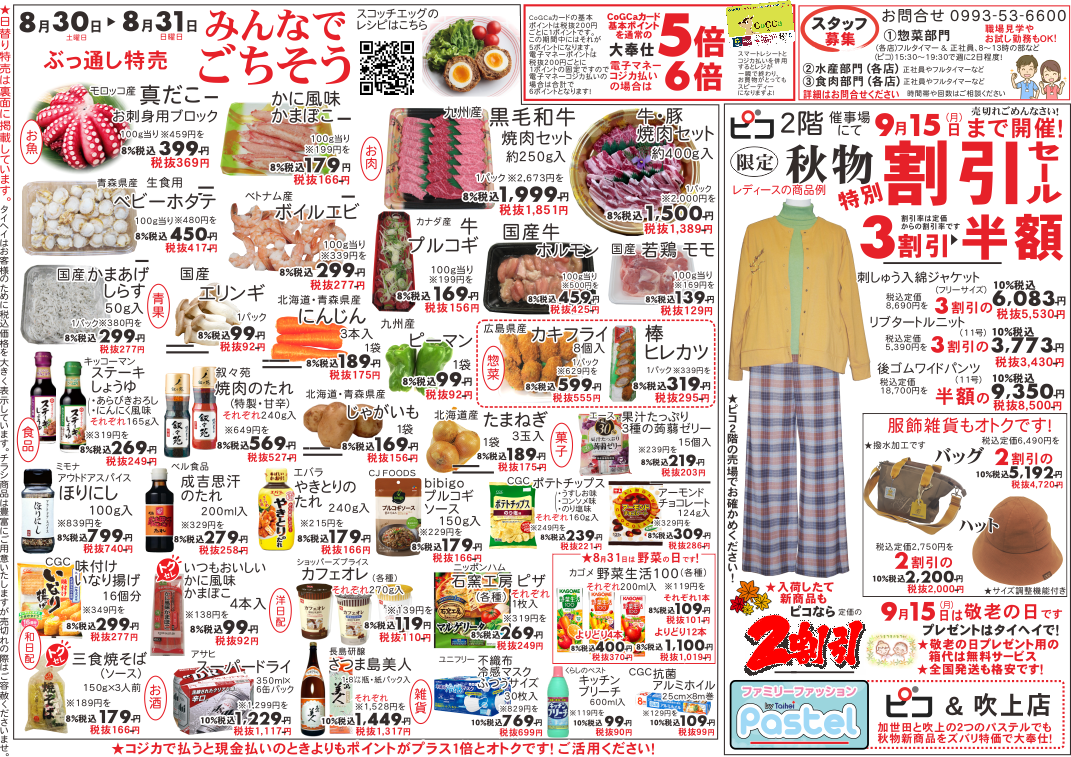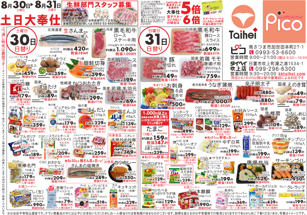 8月30日(土)~31日(日)のチラシは以下の通りです。