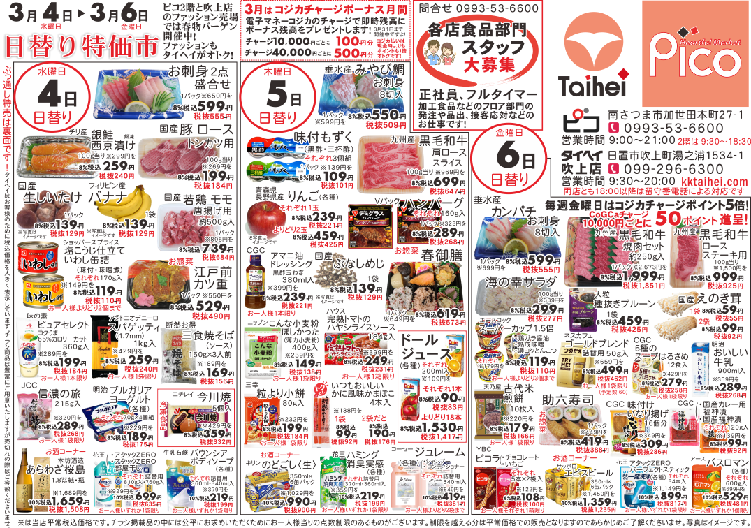 3月4日(水)~6日(金)のチラシは以下の通りです。