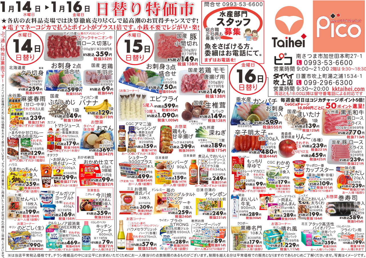1月14日(水)~16日(金)のチラシは以下の通りです。