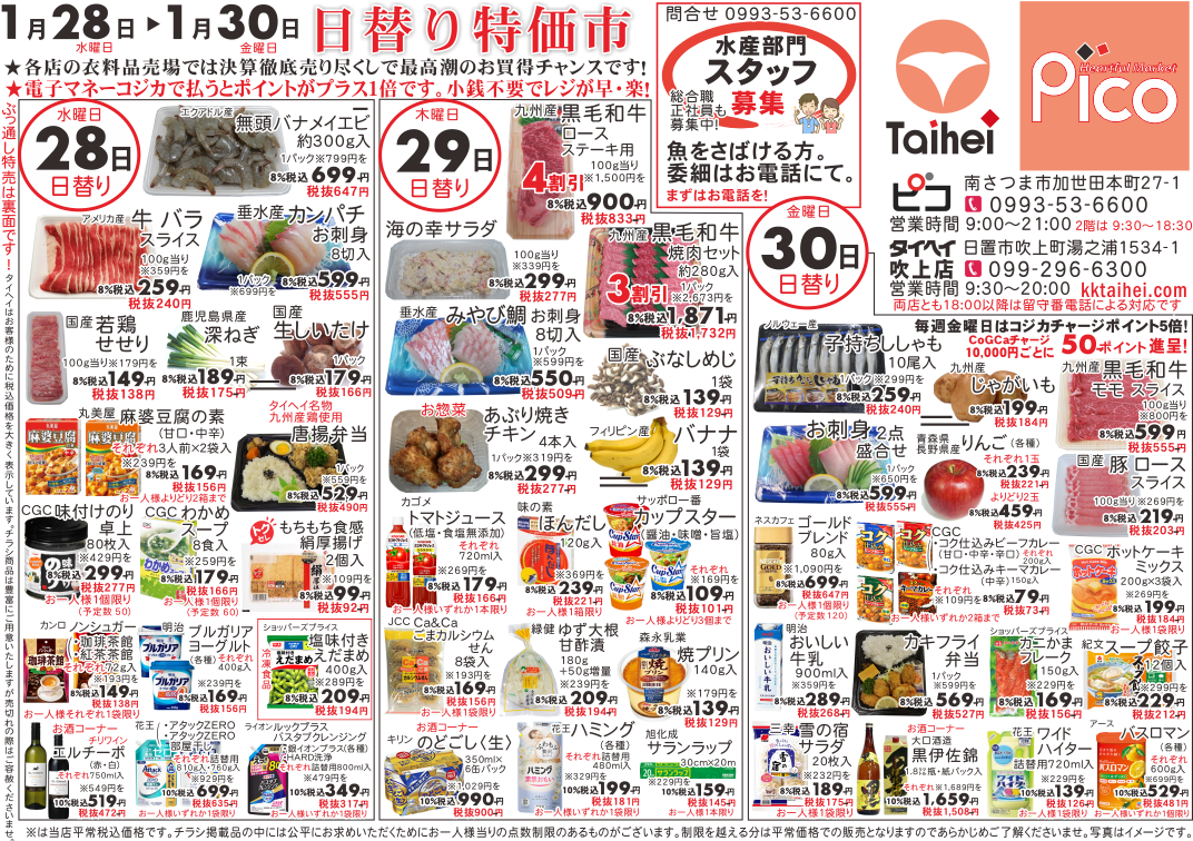 1月28日(水)~30日(金)のチラシは以下の通りです。