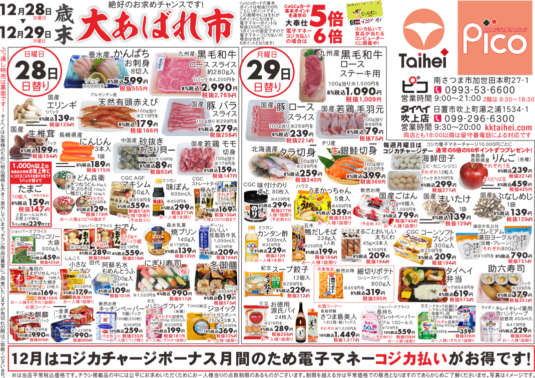 12月28日(日)~29日(月)のチラシは以下の通りです。