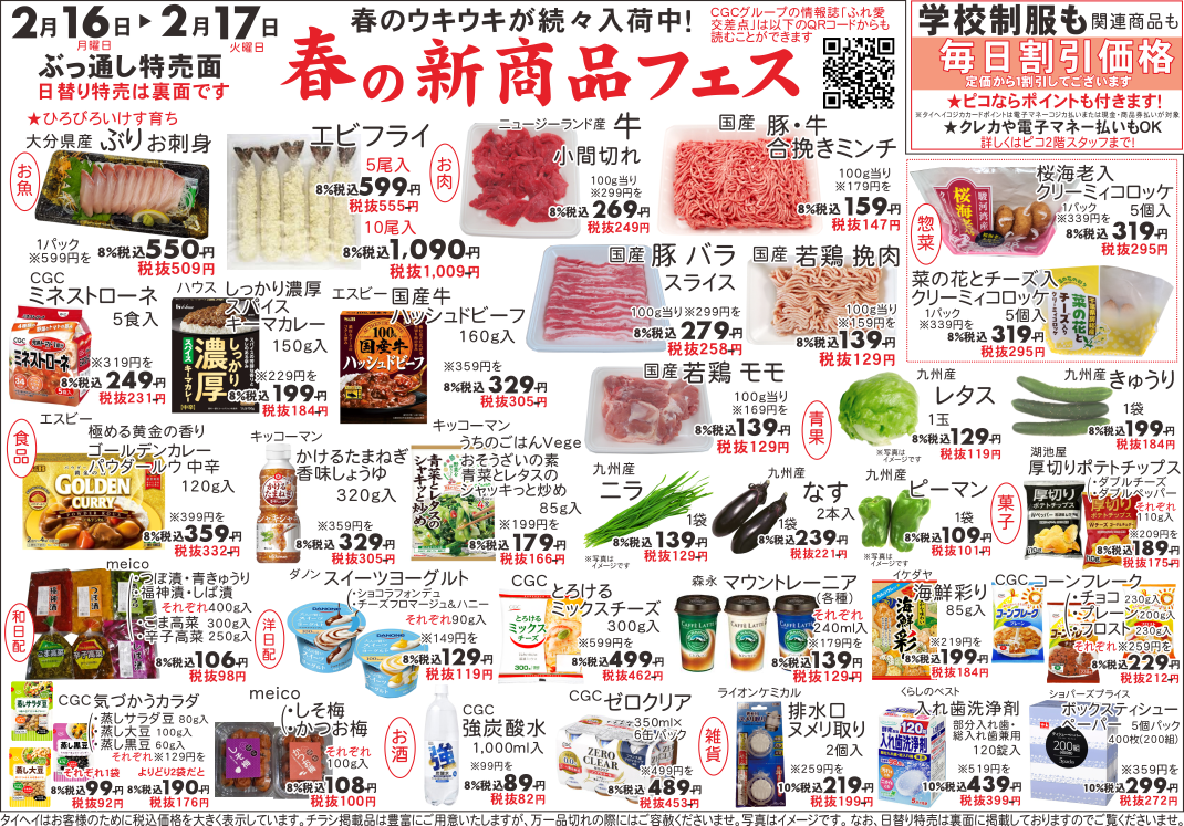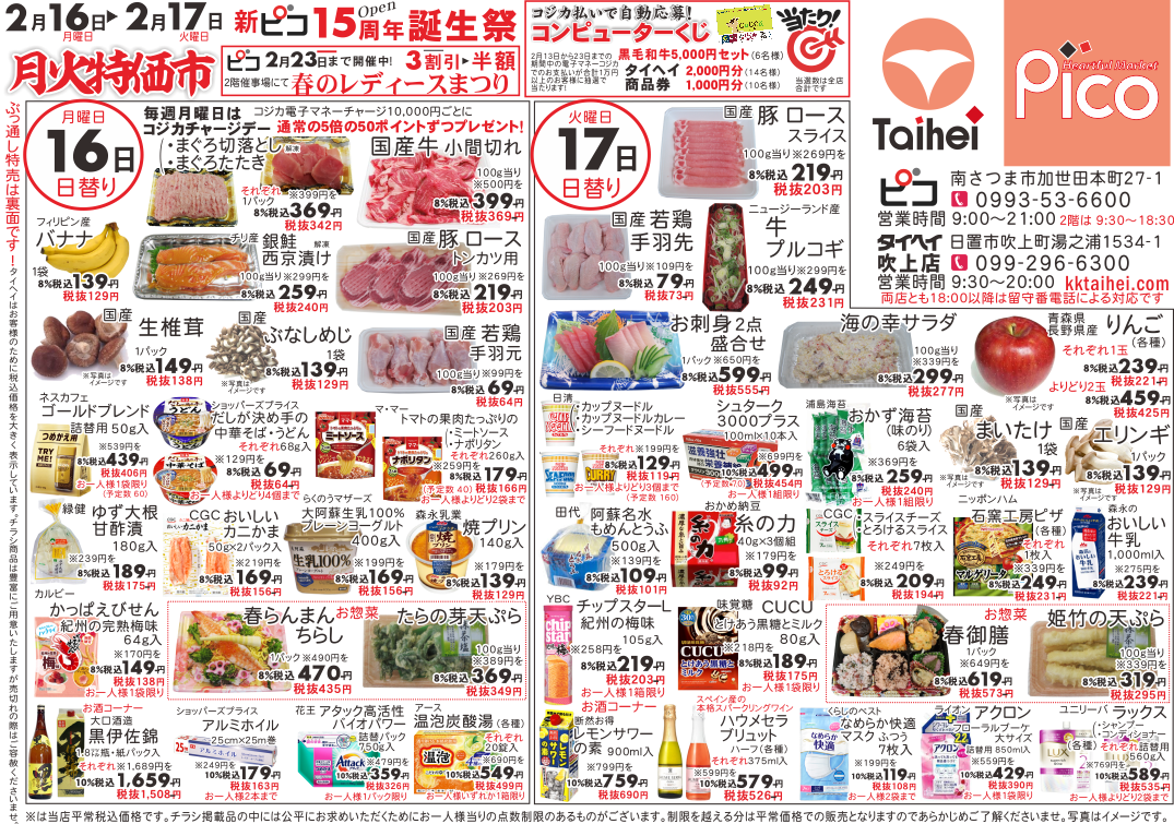 2月16日(月)~17日(火)のチラシは以下の通りです。