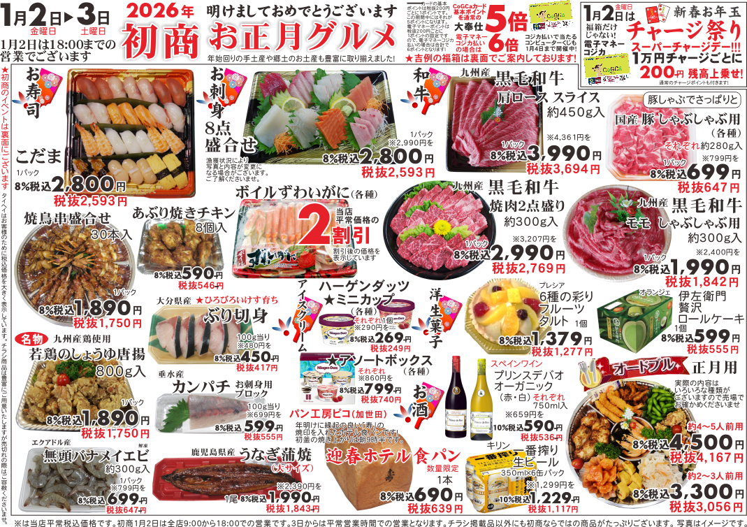1月2日(金)~3日(土)のチラシは以下の通りです。