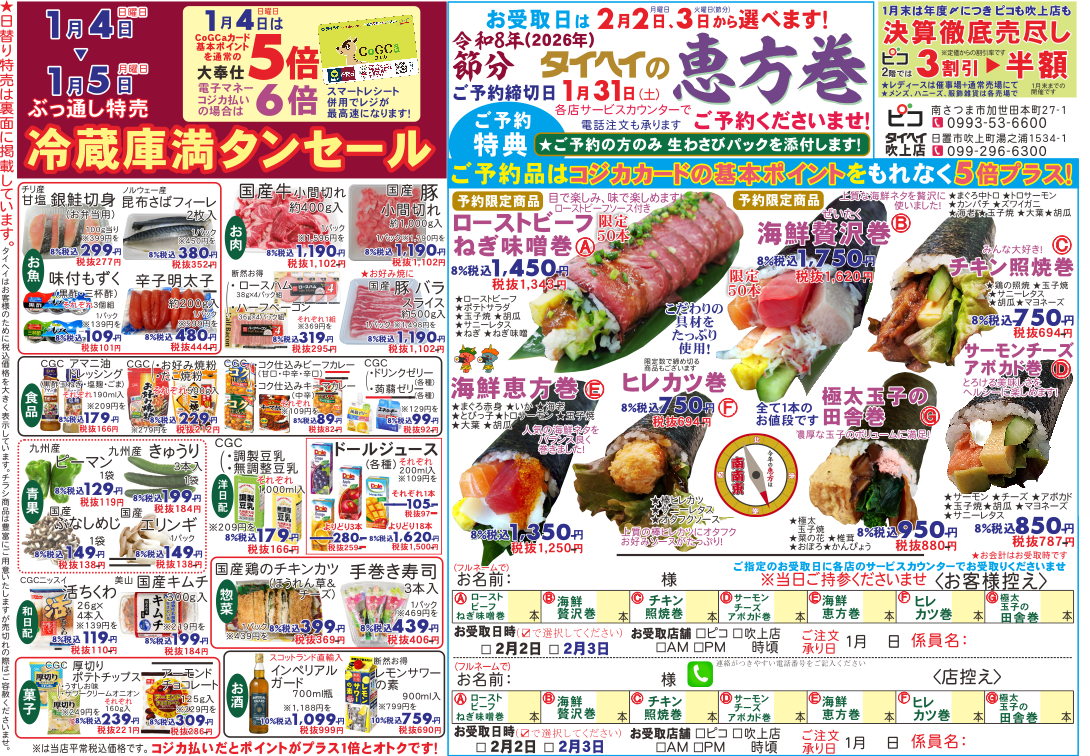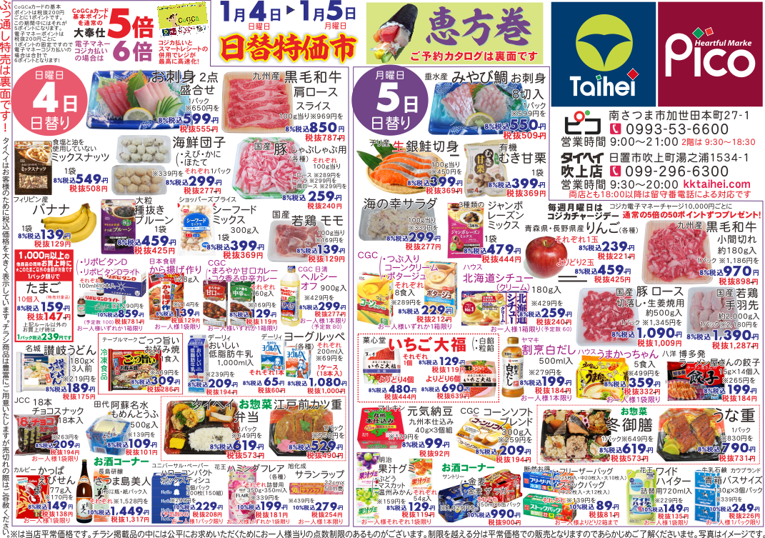 1月4日(日)~5日(月)のチラシは以下の通りです。