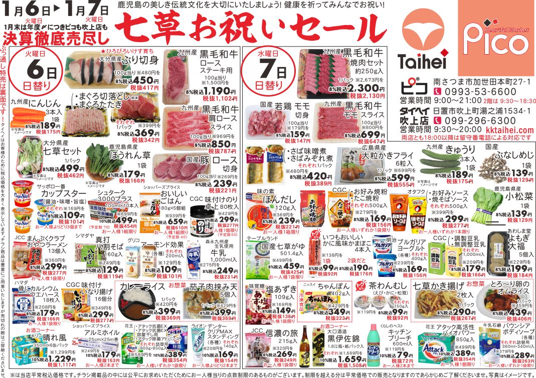 1月6日(火)~7日(水)のチラシは以下の通りです。