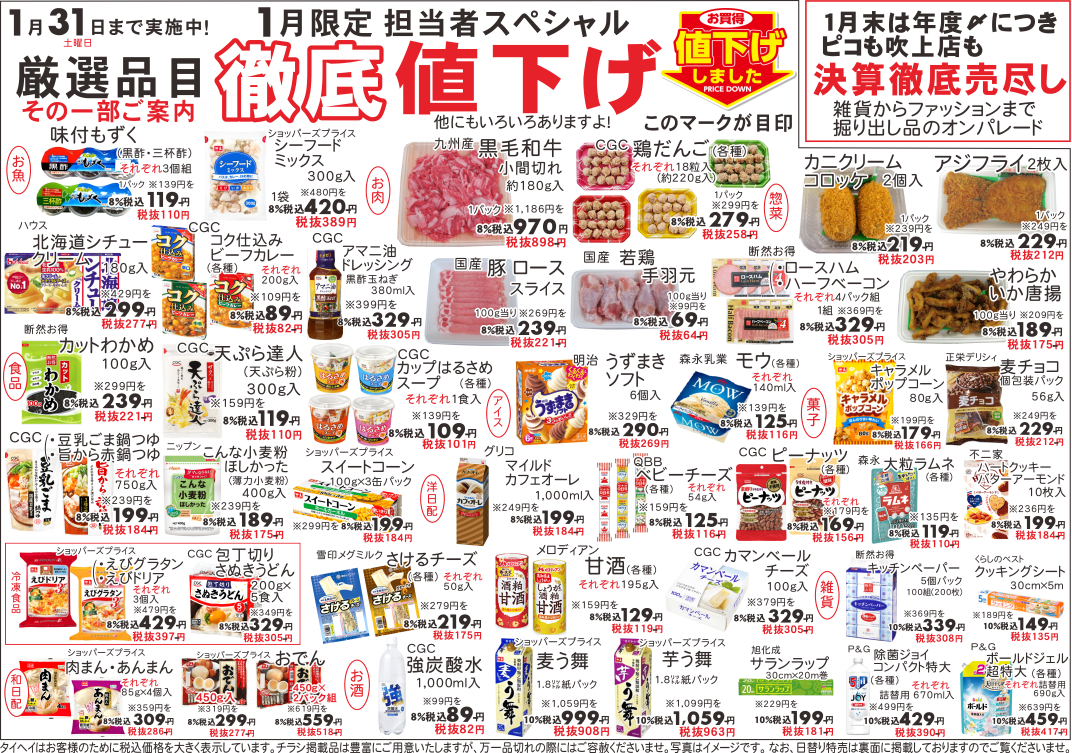1月8日(木)~9日(金)のチラシは以下の通りです。